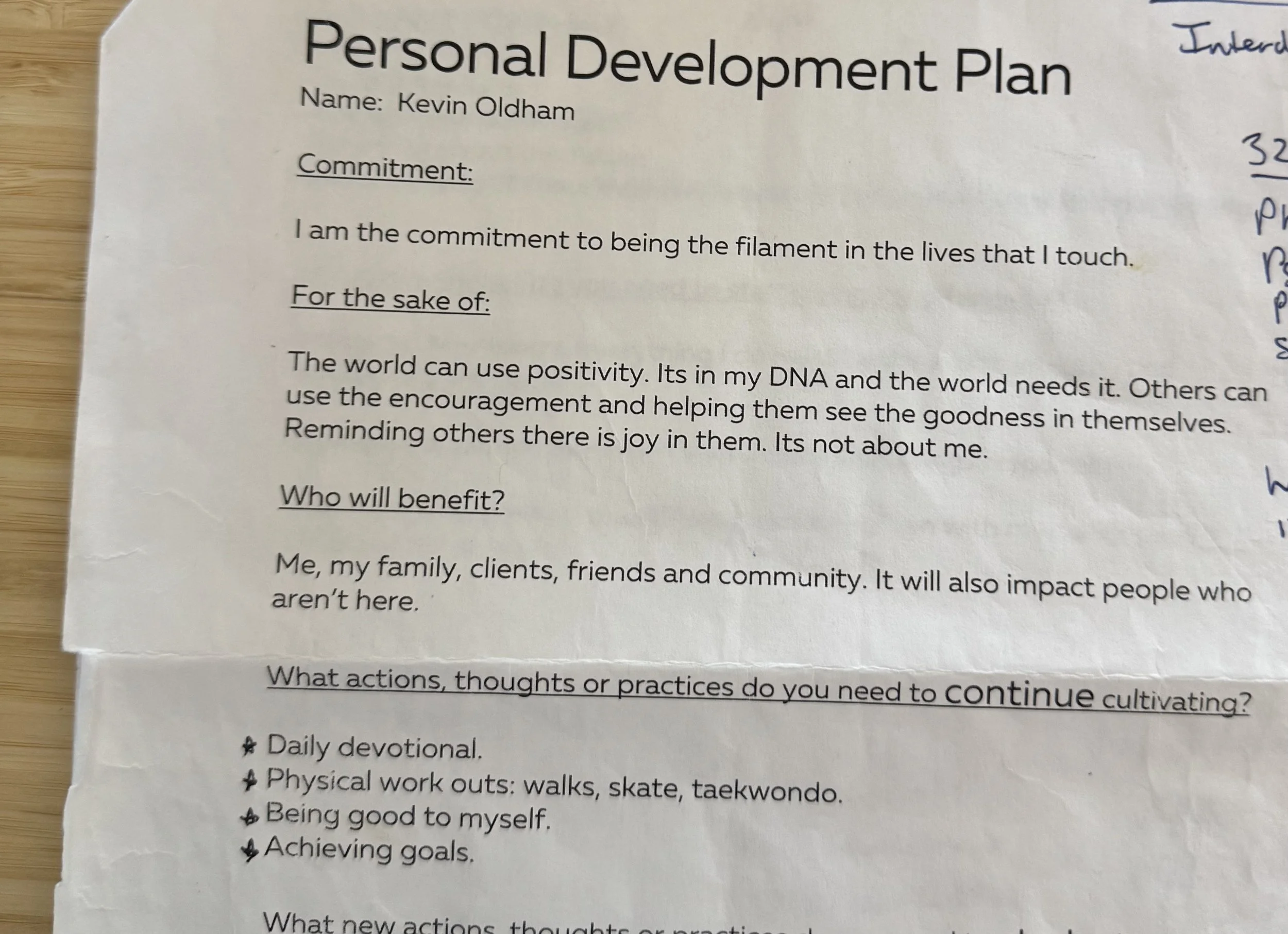 This is my original document from 2021. It's a couple of pages long, it's beat up, and I've accomplished most of what I needed to fulfill my commitment.